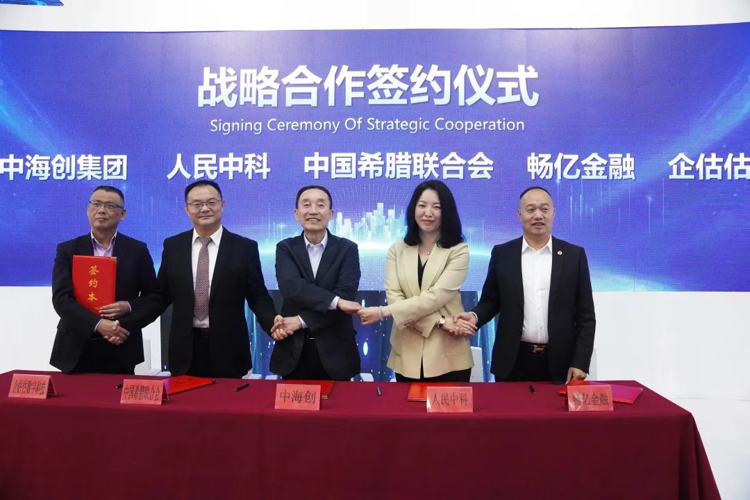 后,中海创与人民中科、中国希腊联合会、畅亿金融、福建企估估数字科技隆重签订战略合作协议。